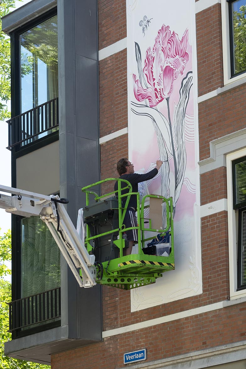 De allereerste Chinese muurschildering in Europa van de Chinese kunstenaar Li de Cai wordt vervangen nadat het onvervangbaar bleek. BKOR vond de Rotterdamse beeldend kunstenaar Evelyn Taocheng Wang bereid een nieuw werk te maken voor in een sierlijke 19e-eeuwse lijst. Dit werk Tulip hoort thuis in haar oorspronkelijke serie Vanitas en is vanaf 7 augustus te zien aan de Veerlaan, hoek Sumatraweg in Rotterdam-Katendrecht.