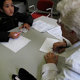 senioren en schoolkinderen portretteren elkaar